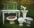 42” Round table umber wrought iron/distressed white wood top - $85.00
